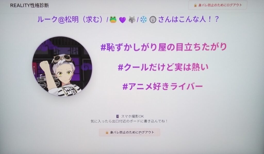 ほとんどのコーナーがREALITYのプロフィールのQRコードを使用して楽しむものでした!