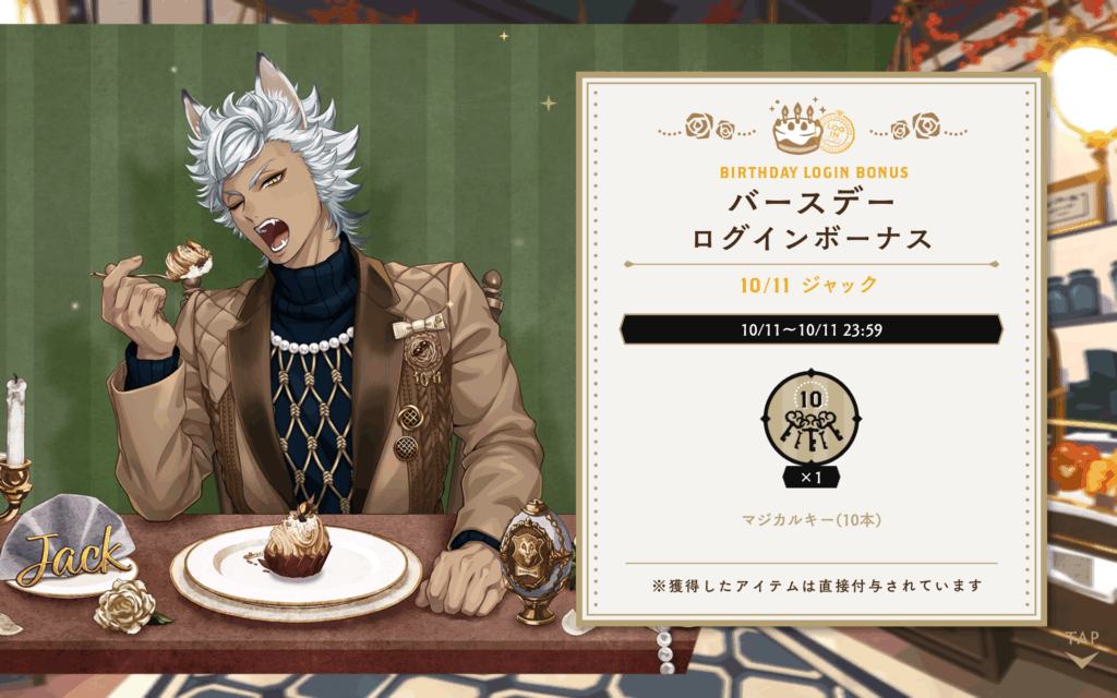 まずはジャックのバースデーログイン時のメッセージから紹介!