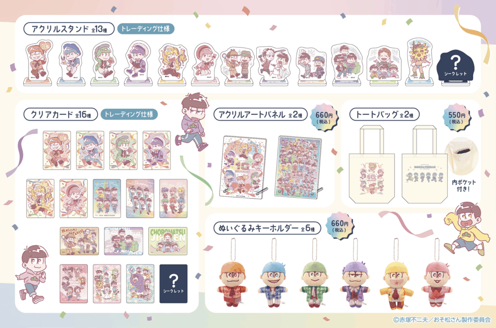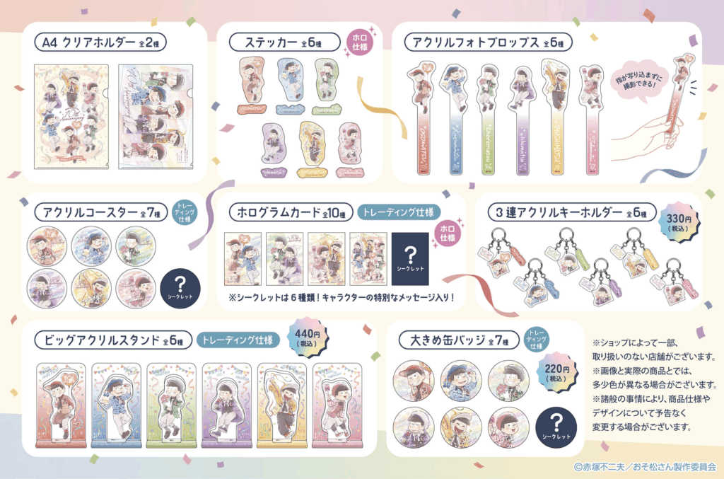 TVアニメ「#おそ松さん」10周年をお祝いする6つ子の特別描き下ろしイラストや、名エピソードキャラなどの描き起こしイラストを使用したアイテムが勢ぞろい🎶