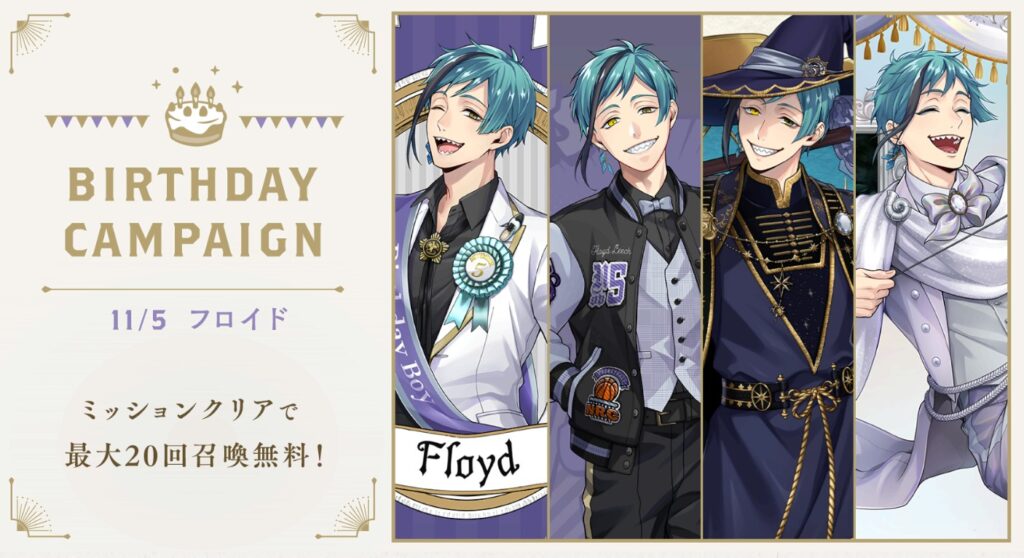 出たキャラクターはフロイドの誕生日を祝いに来たメンツで納得しますかね(;^ω^)