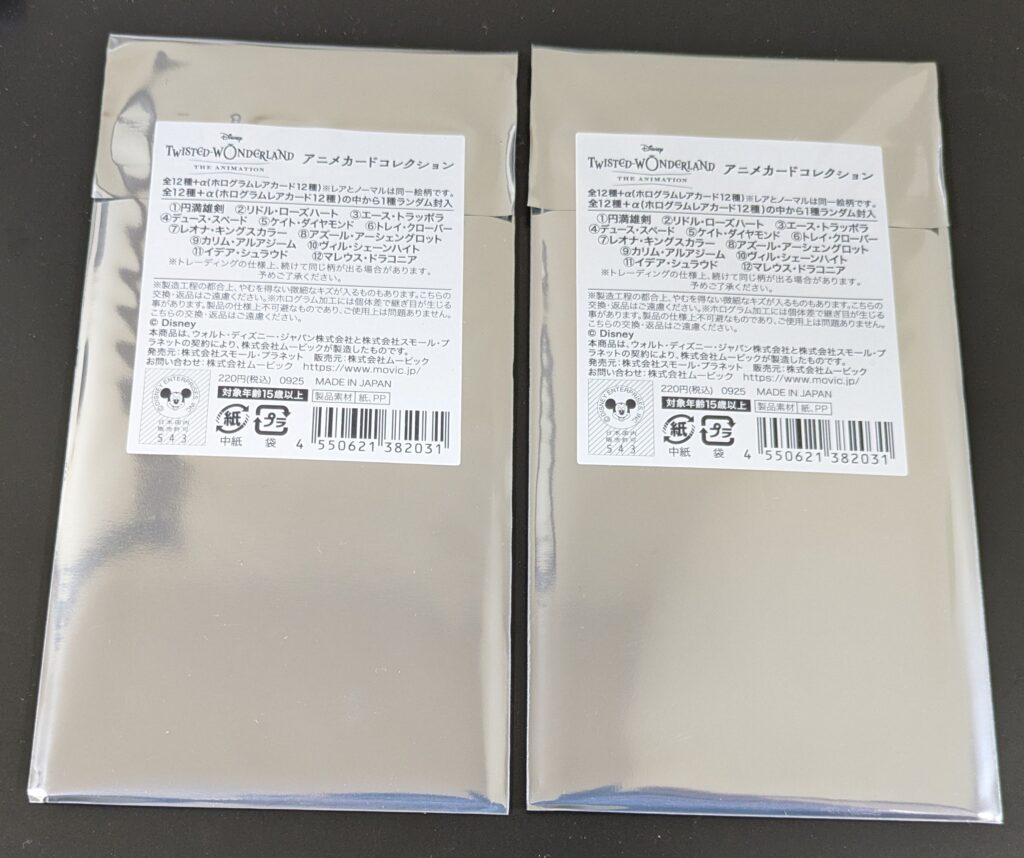 『ディズニーツイステッドワンダーランド』のアニメカードコレクションを2点購入してきたので、結果紹介します(^^)/