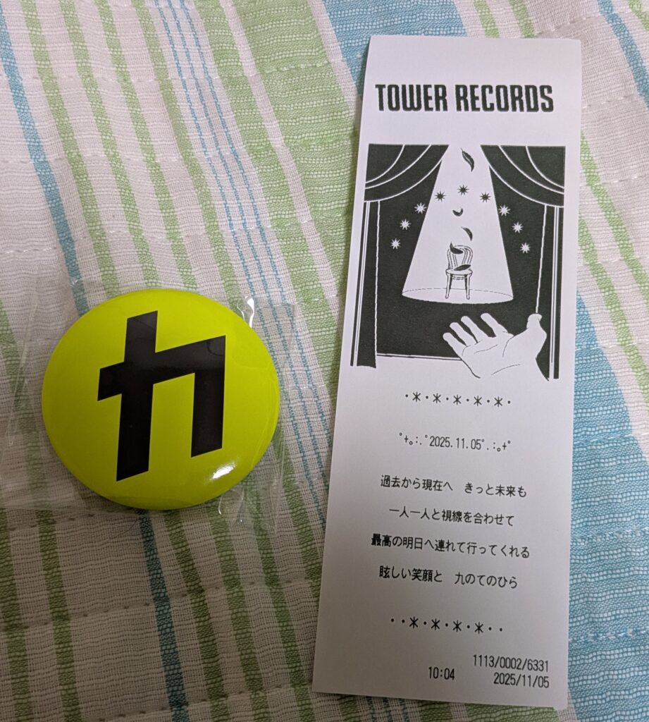 特典は『カリスマックス』の缶バッジとタワレコードの購入者に貰えるレシートでした(^_-)-☆