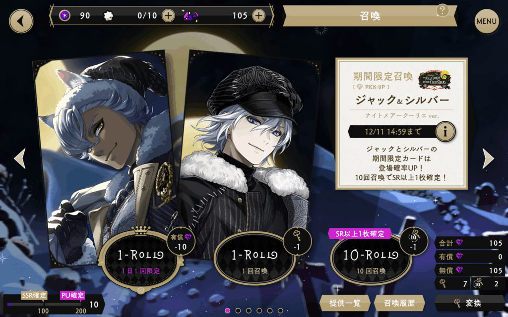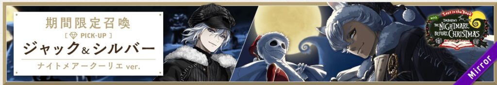 現在「Lost in the Book with Tim Burton's The Nightmare Before Christmas 期間限定ピックアップ召喚 ジャック&シルバー」が開催中です。