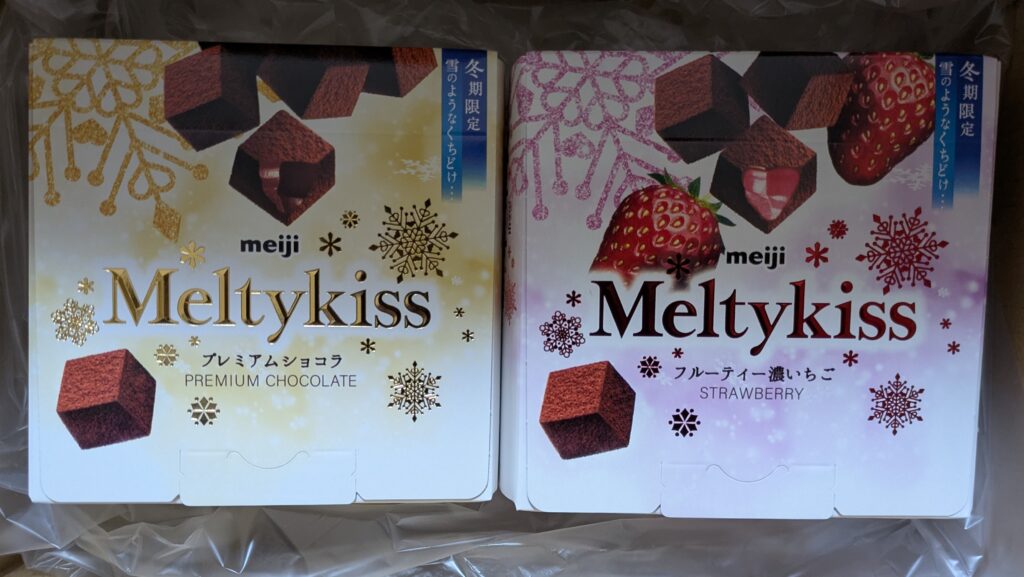 メルティーキッスは「プレミアムショコラ」と「フルーテイー濃いちご」の2種類が入ってました!!