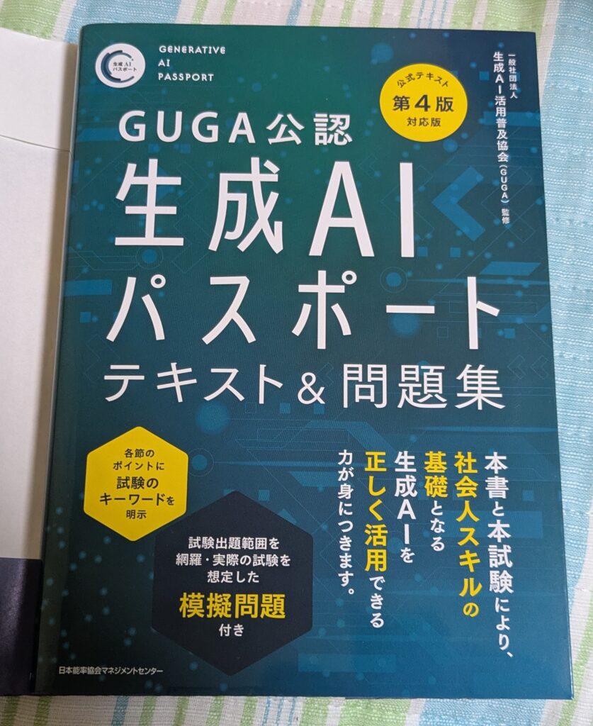 購入した本は『GUGA公認 公式テキスト第4版対応版 生成AIパスポート テキスト&問題集 』です!!