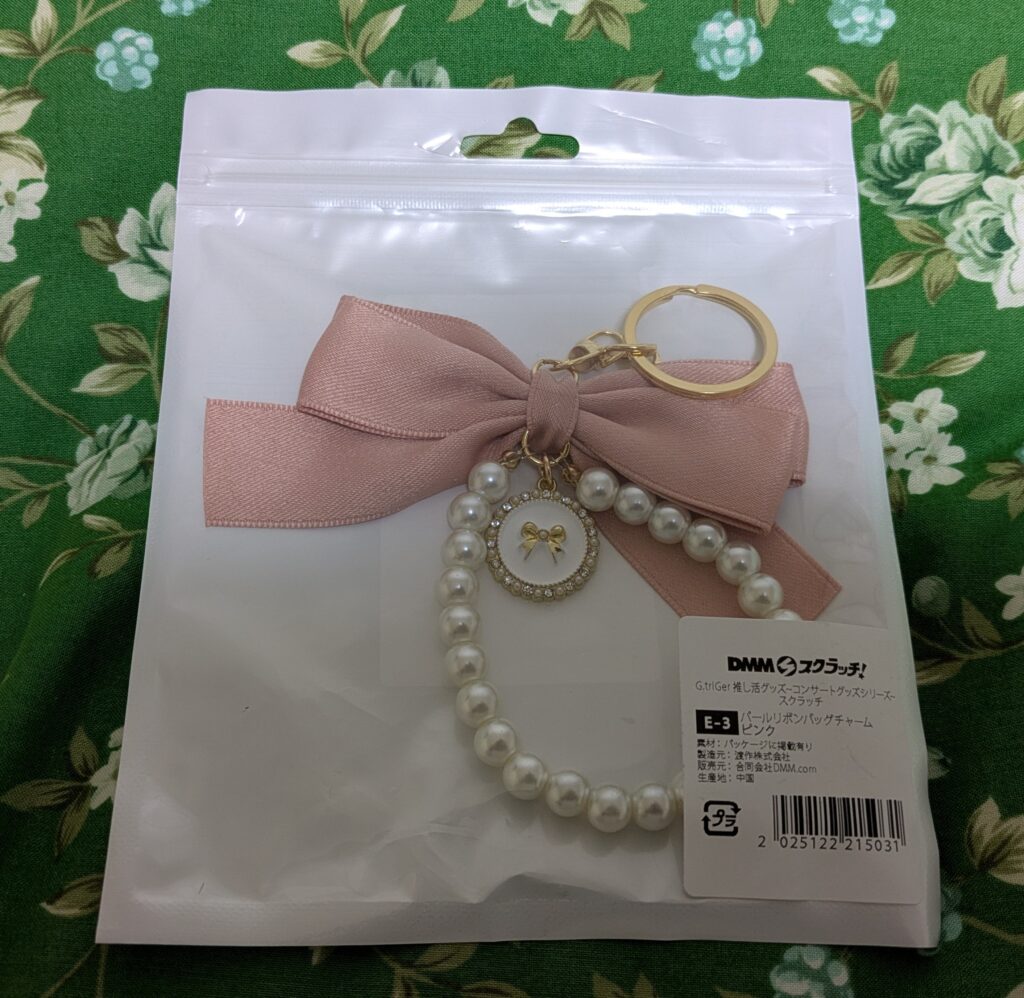 E賞(E-3.ピンク):パールリボンバッグチャーム