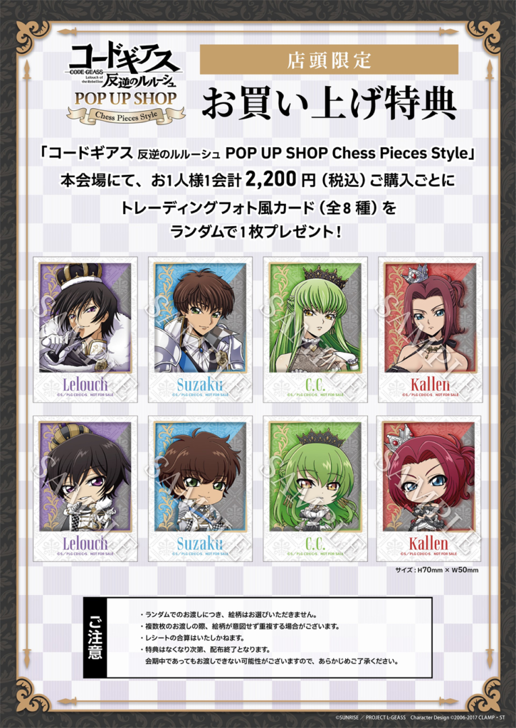 今回は『コードギアス 反逆のルルーシュ』POP UP SHOP -Chess Pieces Style-の結果紹介でした!
