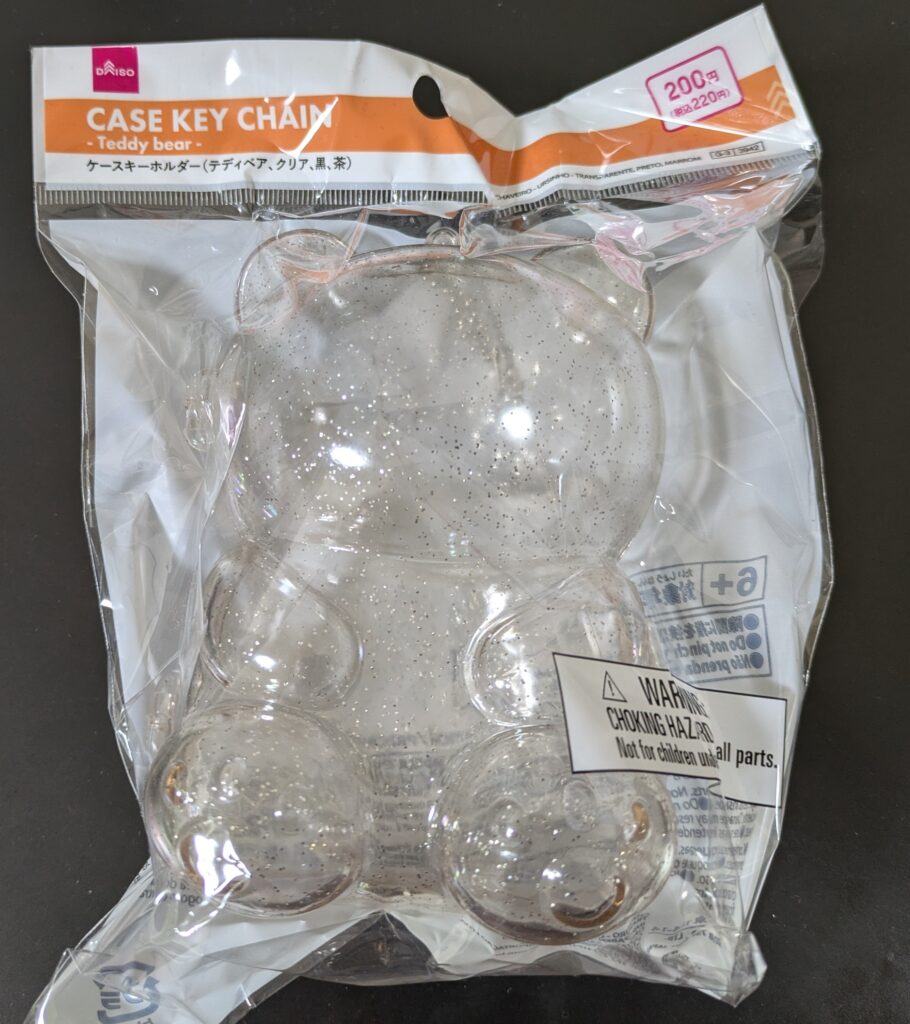 今回はDAISOで購入した。ケースキーホルダー(テディベア・クリア・黒・茶)の紹介でした!